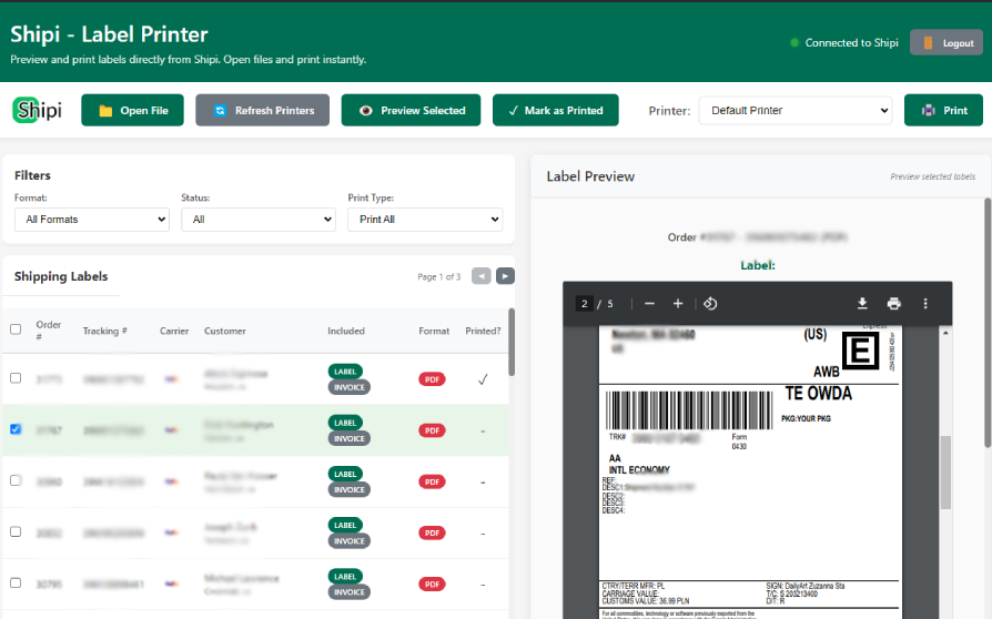 Print Shipi labels directly to your printer - on Mac & Windows.